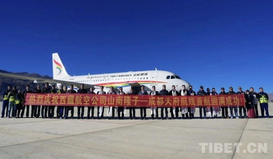 中国西藏网讯 12月21日上午10时13分,西藏航空TV9735航班平稳降落在西藏山南隆子机场,成都天府⇌山南隆子往返航线正式通航。