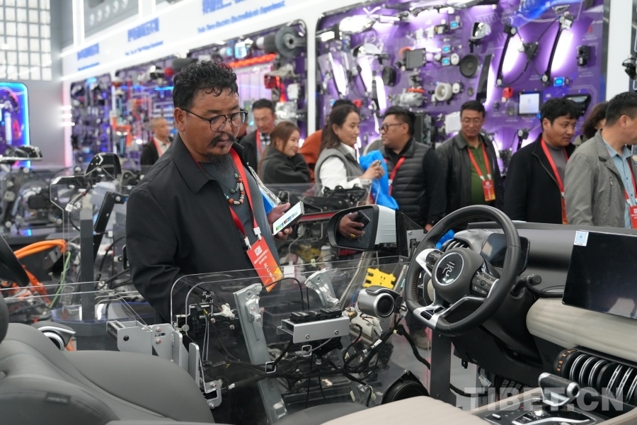 考察团一行体验了新型交通产品使用,并扫码观看汽修课程,与教育集团围绕农牧区汽修人才培育、技能培训合作等话题开展交流,探讨适合西藏农牧区的技能人才培养路径。