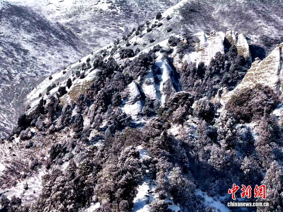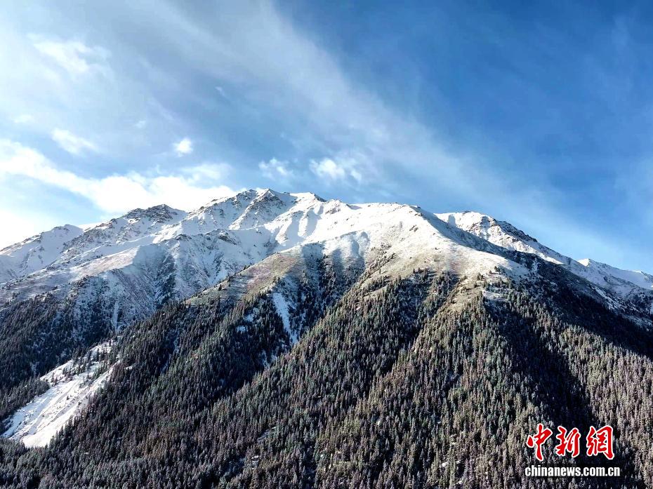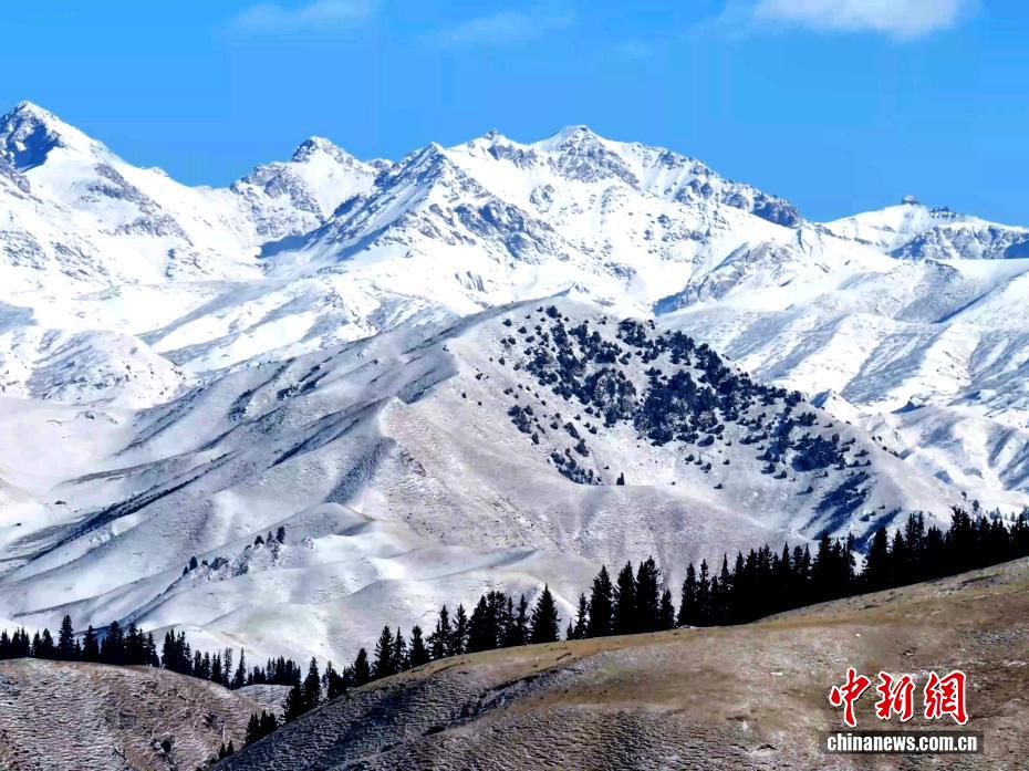 冬至时节,位于祁连山腹地的青海省海北藏族自治州祁连县境内迎来降雪。皑皑白雪与湛蓝的天空为伴,黑色的岩石与苍松相依,与绵延不尽的祁连山共同绘就一幅雄浑壮美的高原雪域画卷。