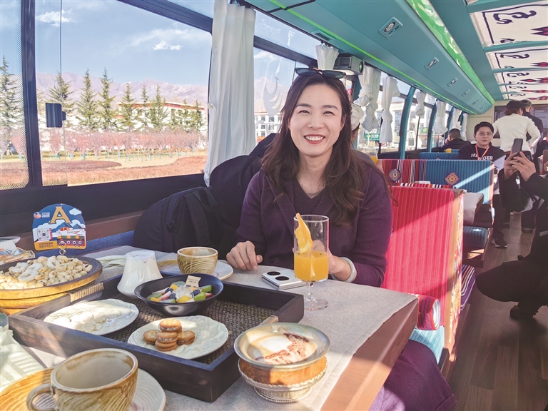 为了让游客和市民能够品尝到最地道的拉萨美食,观光巴士运营方与拉萨多家知名餐厅展开了深度合作。乘车期间,游客可以围炉煮茶,感受那份温馨与惬意,品尝果茶的清甜、干果的香脆与甜品的绵密交织在口中的美妙滋味;还可以喝上一杯用高原牦牛奶与醇厚红茶小火慢熬而成的甜茶,搭配上融合藏式元素的精致茶点,仿佛瞬间穿越到了拉萨当地人的生活中,沉浸式体验他们的悠闲午后时光。